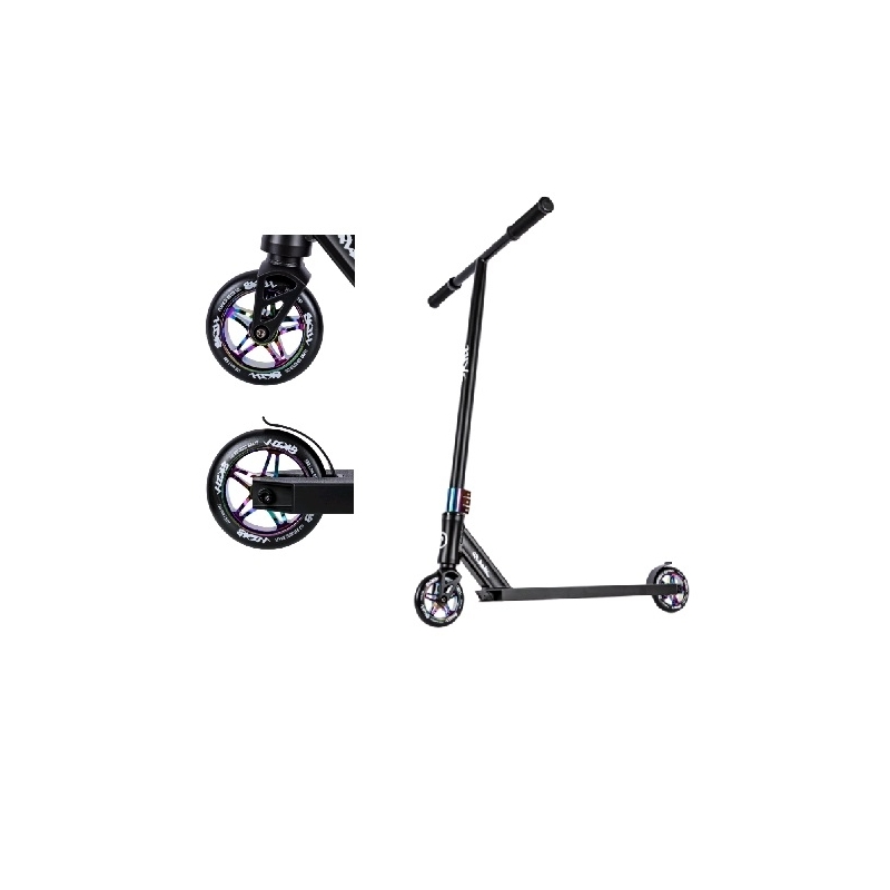 Самокат выполнен в строгом эксклюзивном дизайне и собран из качественных компонентов: Дека самоката выполнена из высокопрочного облегченного алюминиевого сплава отвечающая за надёжность и безопасность райдера, размер деки составляет 51х11,5х2,5 см., футспейс (пространство для ног) составляет 37см. Дорожный просвет 4,5 см. T-образный стальной руль с вращением на 360 градусов имеет размеры: высота руля от рулевого стакана 62см и ширина руля 58см, высота самого самоката от земли до грипс 85см. Самокат подходит для начинающих и продвинутых райдеров с ростом от 125 до 165 см, с максимальной нагрузкой до 100кг.Особенности:- материал рамы/основания: алюминиевый сплав сталь алюминий- спортивное назначение: самокаты- возрастная группа: для подростков- особенности самоката: Компрессия HIC возможность поворота руля на 360 гр тормозное крыло- тип тормоза: ножной крыло-тормоз задний- число колес: 2 колеса 2х110мм Два с подшипниками ABEC9.- задний тормоз: ножной стальной крыло-тормоз- вес без упаковки (кг): 3.75 кг