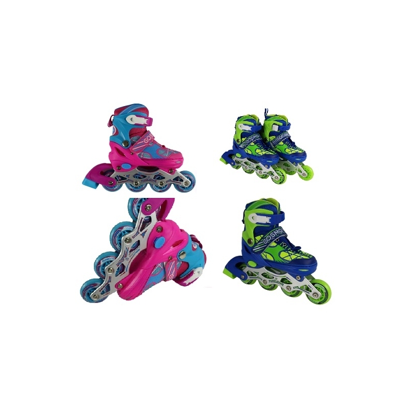 Роликовые коньки Cosmoride Sunshine для легкого и безопасного катания. Удобные мягкие ботинки, изготовленные по новейшей технологии из кожзама в комбинации с нубуком и сетчатым материалом.Хорошая вентиляция внутреннего сапожка и широкая стелька, поддерживают комфортное состояние даже при длительном катании.Нейлоновая оболочка, ТРЕ манжета.Улучшенная боковая поддержка ноги.Надежную фиксацию обеспечивают шнуровка, липучка, внешняя застёжка и пяточный ремень.Прочная алюминиевая рама. Компенсаторы роста ноги позволяют использовать их несколько сезонов, кнопочная система регулировки на 4 полных размера.Комплектные подшипники соответствуют спецификации Европейской Ассоциации Инженеров: АВЕС - 7.Долговечные колеса из 100 % PU (полиуретан): жесткостью 82А.