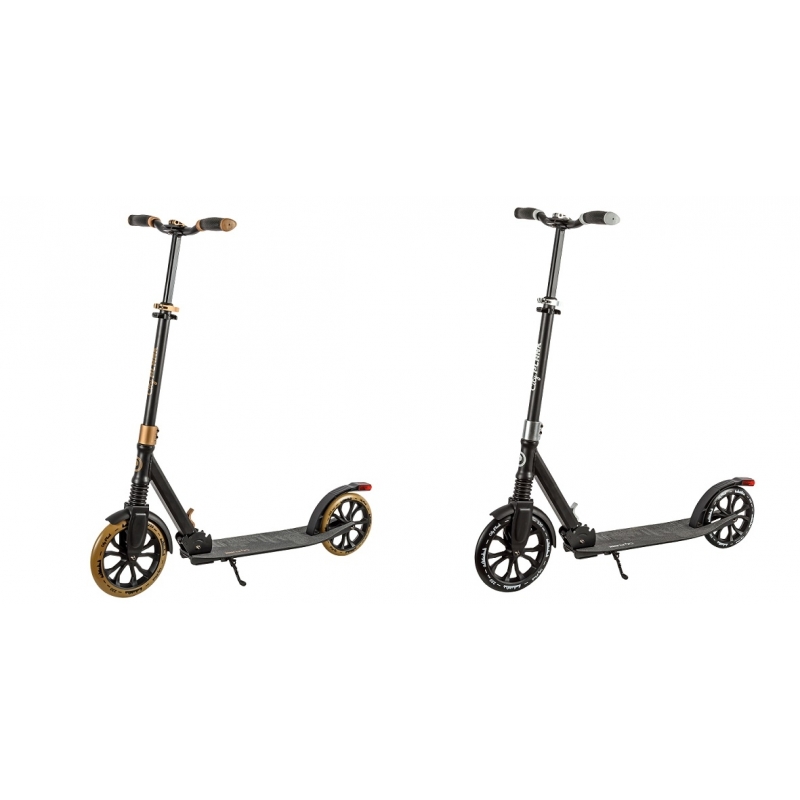 Классический городской двухколесный складной самокат на больших колесах PLANK CITY – идеальное решение для комфортного передвижения по городу с максимальной скоростью и отличным накатом. В самокате отлично сочетаются красота, комфорт и надежность, а так же безопасность - данная модель оснащена задним тормозом со СТОП сигналом. Самокат оснащен большими износостойкими полиуретановыми колесами 230х205мм, и высокоскоростными высокого класса подшипниками ABEC 9 из углеродистой стали - наиболее герметичные подшипники с прорезиненными уплотнениями, самые точные и качественные подшипники для скоростных катаний, благодаря чему самокат имеет отличную скорость и управляемость, а также хорошее сцепление с дорогой. Сбалансированный передний амортизатор легко справляется с неровностями на дороге. Эргономичные ручки самоката, выполнены из мягкого прорезиненного материала, приятного на ощупь, которые предотвратят соскальзывание рук и сделают поездку комфортной и безопасной. Сам руль оснащен дополнительной фиксацией – что уберет все возможные люфты при поездке и сделает ее более приятной и комфортной. Высоту руля можно быстро настроить в различных положениях 83-90-95-100 см., ширина руля составляет 48,5см. Модель оснащена легкой системой складывания, а также подножкой для установки на стоянку в вертикальном положении. Рама самоката выполнена из алюминия, что обеспечивает прочность и легкость конструкции, легко выдерживает нагрузку до 100 кг, так же рама самоката имеет защитный слой за счет анодирования алюминия, что дает сохранение целостности и равномерности покрытия в процессе эксплуатации, сопротивление коррозийным процессам на высоком уровне, сохранение внешней эстетики.Вес самоката составляет 5,45 кг.