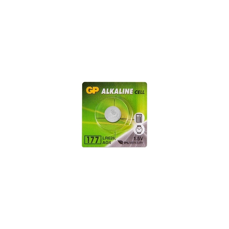 Круглая (дисковая) марганцево-щелочная батарейка GP (AG4, LR66, 377, 626) напряжением 1.5V. Применяется в качестве автономного источника питания электронных устройств, для которых требуются элементы питания типоразмера LR66 (электронные часы, калькуляторы, тестеры, фото-видео техника, портативные носимые устройства).Дисковые батарейки GP изготавливаются по безртутной технологии. Корпус изготавливается из металла, а не фольги, которую используют в дешевых no-name батарейках. Это исключает возможность вытекания электролита и обеспечивает длительное хранение батарейки без потери ее потребительских свойств.Батарейки GP отличаются высокой энергоемкостью и низким уровнем саморазряда. Саморазряд батареек GP при хранении при комнатной температуре - менее 2% в год.
