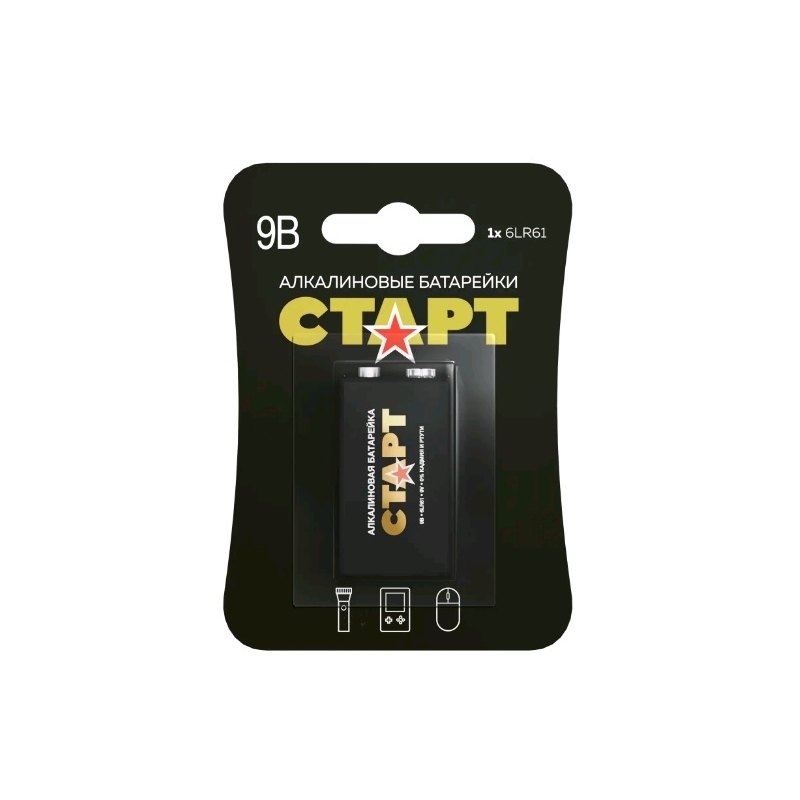 СТАРТ 6LR61 – самая мощная (9 В) и энергоёмкая батарейка из серии щелочных элементов питания от компании СТАРТ.Такие батарейки содержат в несколько раз больше энергии, чем солевые элементы питания аналогичного типоразмера.К другим достоинствам модели СТАРТ 6LR61 можно отнести длительный срок её эксплуатации, а также неприхотливость. Батарейки могут работать без сбоев практически при любой погоде, в очень широком температурном диапазоне – от -18°C до +50°C.