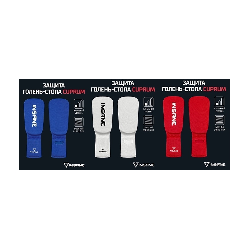 Защита голень-стопа CUPRUM бренда INSANE является базовой защитой для ног - эластичный двухслойный чулок с открытыми пальцами, подходит для многих видов единоборств - каратэ, тхэквондо, кудо и других. Защищает голень и подъем стопы от получения травмы во время тренировок и спаррингов.литой пенный вкладыш для удобства и защитыэластичный материал для дополнительного комфорта.