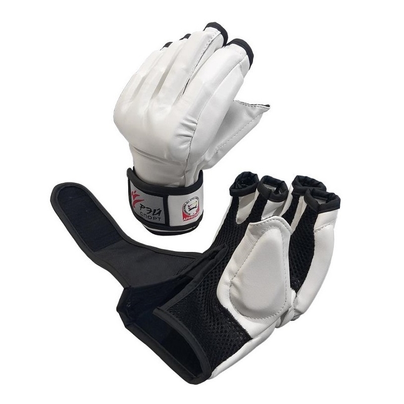Перчатки для единоборств КУМИТЕ одобрены Федерацией Всестилевого каратэ России (ФВКР) и Международной федерацией Всестилевого каратэ (IASKF) и рекомендованы к использованию на соревнованиях всех уровней.Перчатки плотно фиксируются на запястье с помощью широкой манжеты c застежкой Velcro.Материал ударной поверхности – прочная, эластичная искусственная кожа.Сетчатый материал, из которого выполнена ладонная часть перчатки хорошо отводит тепло и влагу от ладони спортсмена.Защитный вкладыш из вспененного полимерного материала надежно защищает руку спортсмена и сохраняет подвижность пальцев, необходимую для захватов.Толщина защитного вкладыша - 15 мм, в ударной области кулака - 20 мм.На манжете перчатки нанесен значок допуска Международной федерации Всестилевого каратэ