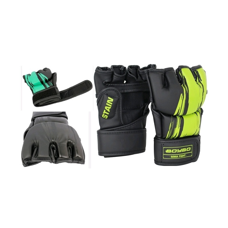 Перчатки для смешанных единоборств BoyBo , выполненны из высокопрочного материала FLEX, с наполнителем из вспененного полимера. Дополнительная защита большого пальца надёжно защищает кисть при ударах и позволяет бороться, не стесняя спортсмена в движениях. Фиксируется манжетой на липучке.