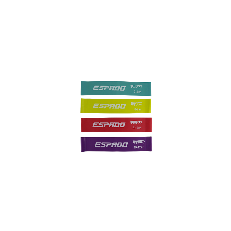 С латексными петлями Espado ваши домашние тренировки станут эффективнее, чем когда-либо. Данный набор эспандеров предназначен для работы над всеми группами мышц тела и содержит 4 эластичные латексные ленты разной жёсткости.Латексные эспандеры обеспечивают равномерную нагрузку на мышцы, щадя при этом суставы и связки и сводя к минимуму риск получения травм, т.к в отличие от других тренажёров, эластичные ленты обеспечивают естественные движения конечностей. Данные ленты помогут вам сбросить вес, нарастить мышцы, либо просто держать свое тело в отличной форме или придать ему нужную гибкость. Эластичные ленты можно использовать для усложнения многих привычных упражнений, например, приседаний и махов ногами.Материал: латекс