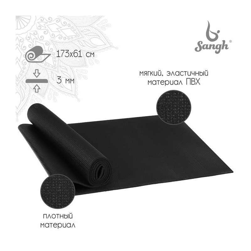 Коврик для йоги Sangh, 173х61х0.3 см, ПВХ