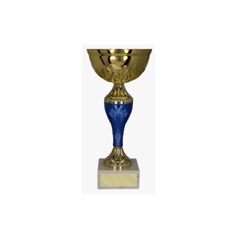 Классический дизайн кубка в сине-золотых тонах. Тонкость придает ему маленькая гладкая чаша, красиво украшенная узким стёмом. Идеально подходит в качестве трофея для разного рода мероприятий.Бренд: Tryumf (Польша)Изготовлено в: КитайМатериал: металл/пластикМатериал цоколя: мраморПостамент Материал цоколя: мрамор.