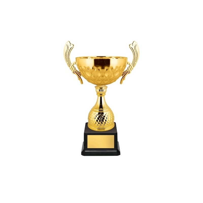 Кубок с металлической чашей на пластиковом основании.Высота, 24.5 см. Диам. чаши, 12 см Ручки ЕстьОснование ПластикЦвет ЗолотоМатериал чаши Металл
