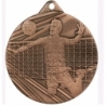 1.Медаль диаметром 50 мм, цвет под бронзу.2. Медаль имеет круглую форму. На медали нет места под вкладыш. Фон – 8 развивающихся в виде ленты полос. 3. В левой части медали изображена одна фигура мужчины - спортсмена в движении, в прыжке. Волейбольный мяч изображен в верхней части медали над натянутой сеткой. Правая рука волейболиста занесена над головой, готовая для удара по мячу. Высота волейболиста 30-40 мм 4. Вес 45 г. Толщина медали 3 мм 5. На медали нет никаких других изображений. 6. Медаль имеет круглое ушко для крепления ленты, размер ушка должен быть не менее 5 мм в высоту и 5 мм в ширину