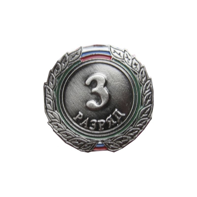 Значок III разряд (взрослый) изготовлен из металла с нанесением лака, цветных эмалей и соответствует всем техническим характеристикам и стандартам утвержденным государственным комитетом Российской Федерации по физической культуре и спорту. Значок выдается спортсменам после успешной сдачи всех нормативов и требований соответствующих данному разряду в конкретном виде спорта.