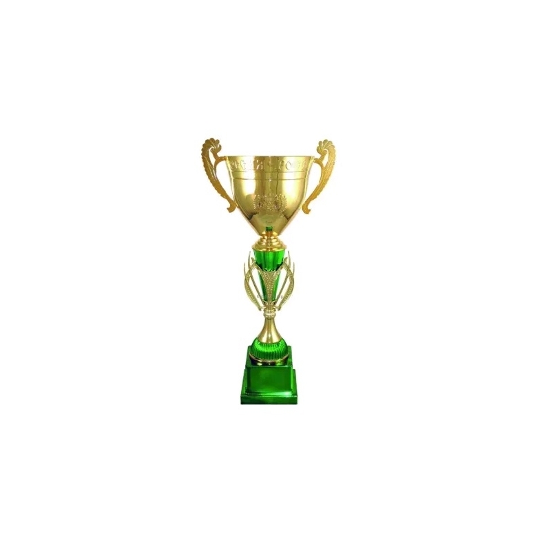 Материал постамента пластикНаличие ручек на чаше ЕстьЦвет золото/зеленыйМатериал Кубка металл/пластикВысота кубка, 47.5 см.Диаметр чаши, 140 мм.