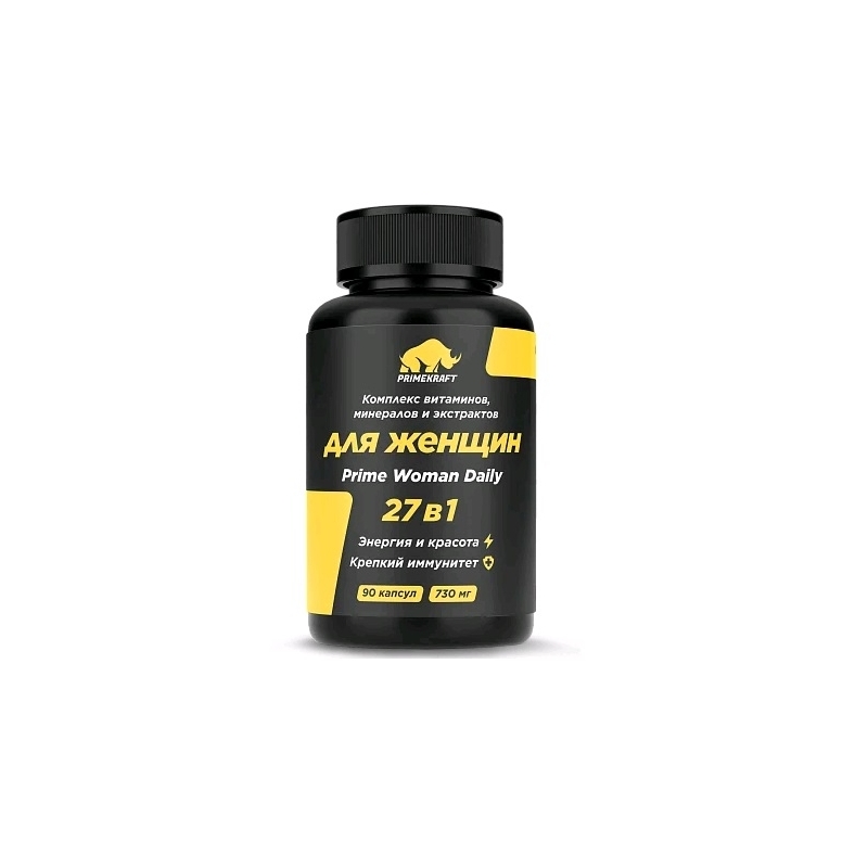 Комплекс для поддержки женского здоровья, основанный на уникальной комбинации поливитаминов, микроэлементов и растительных экстрактов. Активные компоненты оказывают весомое положительное влияние на все сферы женского организма. Ознакомимся с составом Prime Women Daily Complex подробнее:Комплекс включает в себя грамотно подобранное сочетание витаминов и минералов, особенно ценное для женского организма. Витамины A, С, Д3, Е, К2, В1, В2, В6, В12, биотин, фолиевая кислота,а также микроэлементы кальций, йод, магний, цинк, селен, медь, марганец, хром, лютеин, ликопин - в одной капсуле! Забота о физическом и эмоциональном здоровье женщины: поддержка иммунной, эндокринной, сердечно-сосудистой, нервной, функциональной систем. Гладкость и чистота кожи, блестящие волосы, красивые зубы, крепкие ногти, а главное хорошее настроение. Мощная профилактика дефицита важных витаминов и минералов, которые быстро истощаются при повышенных физических и умственных нагрузках и являются особо ценными при неполноценном питания.Изофлавоны сои – фитоэстрогены, облегчающие состояние женщины при гормональных изменениях. Компонент способен регулировать обмен эстрогенов – гормонов, контролирующих жировой и углеводный обмен женского организма, молодость кожи (в частности – вокруг глаз), здоровье матки, утонченный и женственный контур тела. С возрастом выработка эстрогенов снижается, что отражается на эмоциональном здоровье и внешнем виде женщин. Прием комплекса PrimeWomen Daily благодаря изофлавонам сои в составе нормализует гормональный фон в такие непростые периоды в жизни женщины.Ангелика китайская - «женский женьшень», известный лечением тяжелого предменструального синдрома, болезненных менструаций, нарушениях менструального цикла, менструальных спазмов, послеродовой слабости. Восстанавливает цикл после остановки приема гормональных препаратов. Поддерживает гормональный баланс в женском организме, благодаря высокому содержанию фитоэстрогенов в составе. Кроме того, элемент обладает седативным эффектом и снижает раздражительность.Экстракт гарцинии камбоджийской – экзотический компонент, который способствует контролю веса, ускоряя обменные процессы в организме и блокируя синтез жировых клеток. Снижает аппетит и стимулирует процесс похудения. Способствует выработке серотонина, гормона радости. Экстракт виноградных косточек - натуральная добавка, богатая антиоксидантами. Обеспечивает омолаживающий эффект и ускоряет выработку коллагена и эластина. Улучшает внешний вид кожи, делая ее подтянутой и гладкой.Состав: Желатин (капсула), кальция карбонат, микрокристаллическаяцеллюлоза, экстракткорнядягиля(Angelikasinensis),витаминС (аскорбиноваякислота), магнияцитрат, цинкалактат, экстрактгарциниикамбоджийской, экстрактсои(изофлавоны),витаминЕ (токоферолаацетат), никотинамид, экстрактвиноградныхкосточек, марганцаглюконат, витаминА (ретинолаацетат), витаминК2 (менахинон), медиглюконат, магниястеарат (антислёживающийагент), витаминВ12(цианкобаламин), витаминД3(холекальциферол), пантотенаткальция, лютеин, ликопин, диоксидкремния (антислёживающийагент), витаминВ2(рибофлавин), витаминВ6 (пиридоксинагидрохлорид), витаминВ1(тиаминагидрохлорид), хромапиколинат, фолиеваякислота, селексен, йодаткалия, биотин.