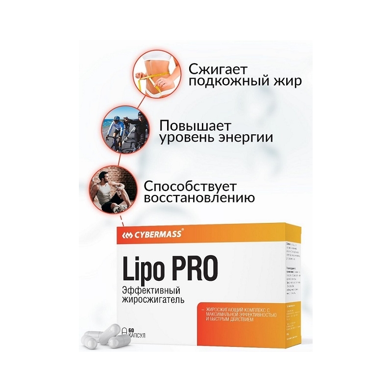 Lipo Pro - уникальный жиросжигатель, обладающий мощным эффектом.Лучшее средство для похудения.Сжигает лишний подкожный жир, высвобождая при этом мощную взрывную энергию, повышает естественный уровень энергии и улучшает ясность ума и внимательность.Постоянное воздействие компонентов приводит к ускорению расщепления жира, в том числе в области талии, бёдер и ягодиц.Капсулы содержат природные вещества, ускоряющие обмен веществ и жиросжигание, а также активно подавляющие аппетит.Lipo Pro поддерживает стройную фигуру, помогает увеличить силу, способствует восстановлению после тренировок, а также обладает иммуностимулирующим действием.Состав:Синефрин, Л-Карнитин тартрат, экстракт гарцинии, экстракт зеленого чая, кофеин, экстракт коры белой ивы, экстракт гуараны, экстракт имбирь, экстракт зеленого кофе, экстракт лимонника, экстракт худии, экстракт элеутерококка, йохимбе, экстракт жень-шеня, экстракт родиола розовая, хрома пиколинат, экстракт черного перца, экстракт кайенского перца), капсула (желатин, диоксид титана).Рекомендации по применению:Взрослым по 1 капсуле 1-2 раза в день во время еды. Не превышать рекомендуемую дневную дозировку. Продолжительность приема – 1 месяц. При необходимости прием можно повторить.