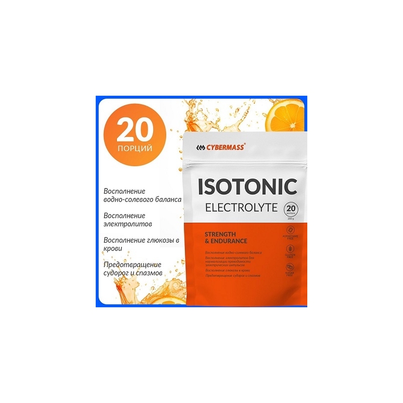 Cybermass Isotonic Classic – это комплексный напиток, уникальный по своему составу, с которым восстановление после интенсивных физических нагрузок будет быстрым и эффективным. Изотонический напиток участвует в восполнении запаса гликогена, витаминов и микроэлементов, поддерживает оптимальную работу всех систем организма, включая кроветворную функцию. При долговременной физической активности данный продукт помогает эффективно восстановить водно-солевой баланс. Употребление продукта во время физической активности поможет предотвратить обезвоживание организма, повысить выносливость и силовые показатели, улучшить общее самочувствие.