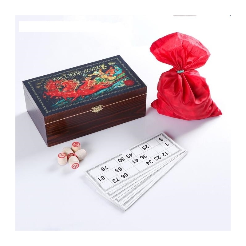 Лото в шкатулке "Красная тройка". Лото считается излюбленным русским развлечением, но мало кто знает, что оно зародилось ещё в XVI веке в Италии. До того, как завоевать популярность по всему миру, какое-то время безобидная игра в бочонки даже была запрещена. С трудом верится, не так ли? Однако в 1521 году сенату Венеции пришлось пойти на эту крайнюю меру — настолько велико и азартно было увлечение итальянцев игрой в лото. Но это не помешало ей позднее завоевать всю Европу, а затем и остальной мир. Лото не имеет возрастных рамок и ограничений в количестве участников — в него играют все, от мала до велика. Игра уникальна тем, что относится к азартным и логическим одновременно. Лото тренирует память, внимательность, логическое мышление и быстроту реакции, развивает наблюдательность, сенсомоторику, речь и усидчивость.