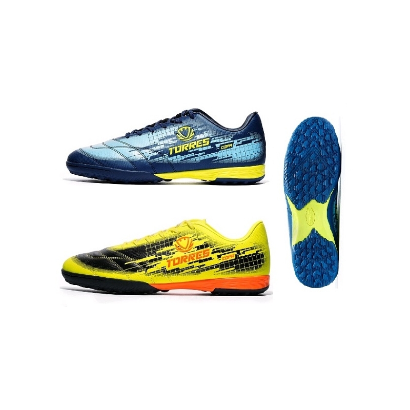 Бутсы футбольные (многошиповки) подростковые TORRES COPA-J разработаны специально для игры на искусственных газонах, жестких синтетических и грунтовых покрытиях. Модель COPA-J выполнена в современном дизайне с использованием ярких, трендовых цветовых сочетаний. Верх обуви изготовлен из синтетической кожи - высококачественного полиуретана. Этот материал идеально подходит для спортивной обуви благодаря своей прочности, гибкости, легкости в уходе и хорошему контакту с мячом. Двойная отстрочка носовой части служит для улучшения сцепления и контроля мяча. Внутренняя (подкладочная) часть, носок из синтетической ткани, пяточная часть из полиуретана. Мягкая и комфортная cъёмная стелька выполнена из вспененного полиуретана с перфорацией и сетчатым текстильным покрытием для лучшей амортизации и вентиляции. Анатомическая форма колодки, усиленная пятка, прочная шнуровка обеспечивают удобство и хорошую фиксацию многошиповок на ноге, защищая от ударов и травм. Отрегулировать полноту и плотность облегания ноги поможет симметричная шнуровка. Прочная, гибкая, высококачественная резиновая подошва выполнена в двух контрастных цветах, имеет большое количество коротких (до 5 мм) шипов, обладает высокой устойчивостью к истиранию, обеспечивает оптимальное сцепление с поверхностью и позволяет полностью контролировать движение во время игры. Дополнительное усиление прошивкой в области крепления носка к подошве.