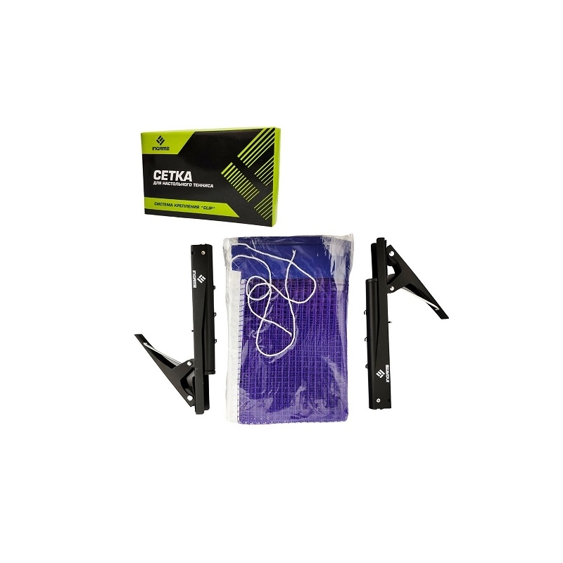 Комплект сетки состоит из сетки. подвесного шнура и опорных стоек вместе с их креплением к поверхности стола. Сетку с помощью шнура и стоек устанавливают так, чтобы её верхний край находился на высоте 15,25 см (6 дюймов) от поверхности. За боковые линии стола сетка не должна выступать более чем на 15,25 см.