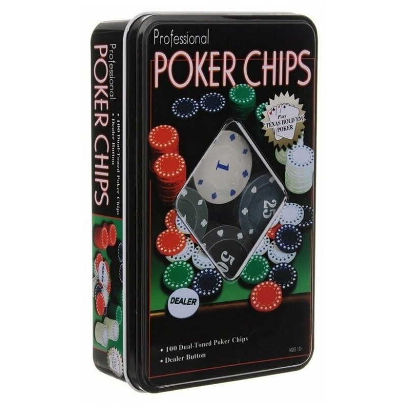 Набор для игры в покер "POCER CHIPS" 100 фишек с номиналом, 1 фишка дилер