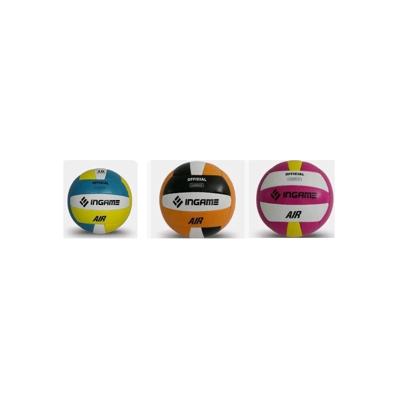 Волейбольный мяч Ingame AIR - любительский волейбольный мяч в ярких расцветках. Рекомендуется для тренировок любительских команд. Поверхность мячей выполнена из мягкой синтетической кожи (поливинилхлорид) смягчает контакт с мячем. Мячи состоят из 18-ти панелей и оснащены бутиловой камерой. Тип соединения панелей - ручная сшивка. Вес мяча 260 -280г. Рекомендуемое давление 0,29-0,32 бар. Производство Пакистан