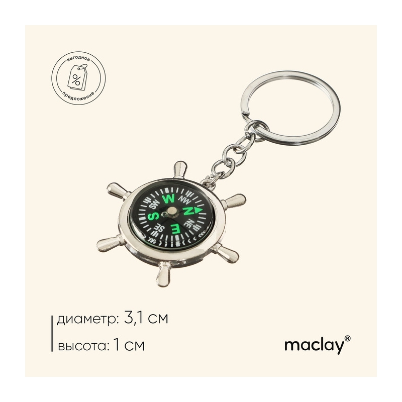 Сувенирный компас-брелок — это стильная вещь, которая подчеркнёт индивидуальность хозяина. Дизайн в виде штурвала с изображением компаса и прочный металлический каркас, безусловно, привлекут внимание и дополнят ваш образ. За счёт небольших габаритов, украшение поместится где угодно, будь то карман или сумка. С таким аксессуаром вы никогда не потеряете ключи.
