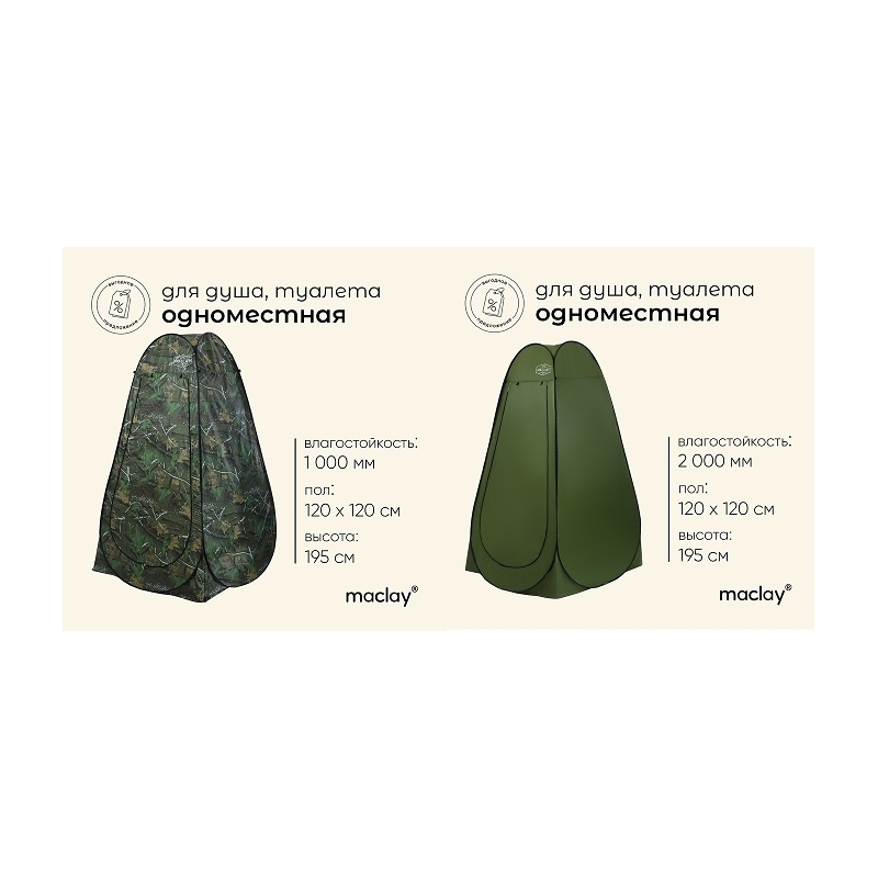 Палатка туристическая, самораскрывающаяся, для душа, р. 120 х 120 х 195 см