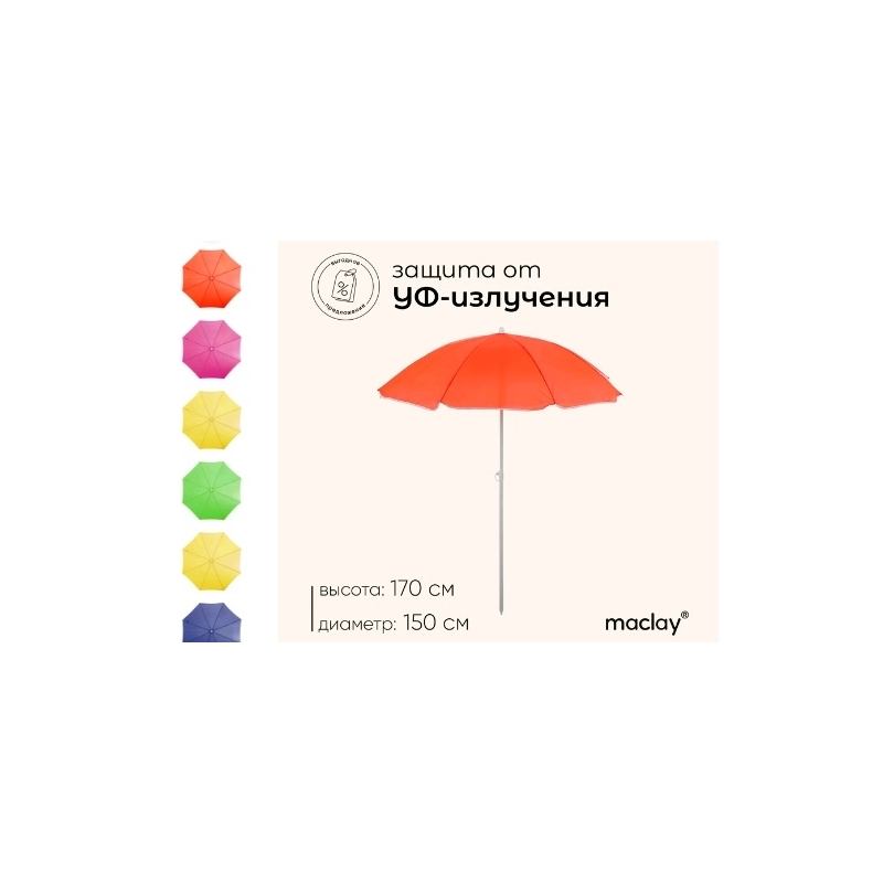 Лето — счастливая пора. Солнечные деньки так и манят выехать на природу, где листва шелестит на ветру, а трава мягко проминается под ногами. Насладитесь всем этим вдоволь и сохраните в памяти лучшие моменты вместе с пляжным зонтом «Классика». Этот яркий аксессуар оградит вас от вредных солнечных излучений и ожогов. Плотный материал и надёжная конструкция прослужат вам не один сезон.Характеристики:Количество спиц: 8.Диаметр спиц: 3 мм.Диаметр стержня: 1,9 см.Диаметр зонта в раскрытом состоянии: 125 смДлина дуги купола: 150 смВысота: 170 см.