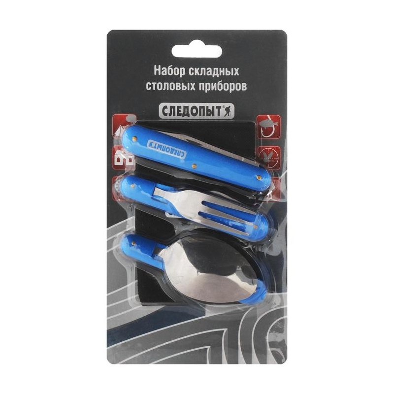 Набор столовых приборов туристический «СЛЕДОПЫТ», ложка, вилка, нож, в чехле