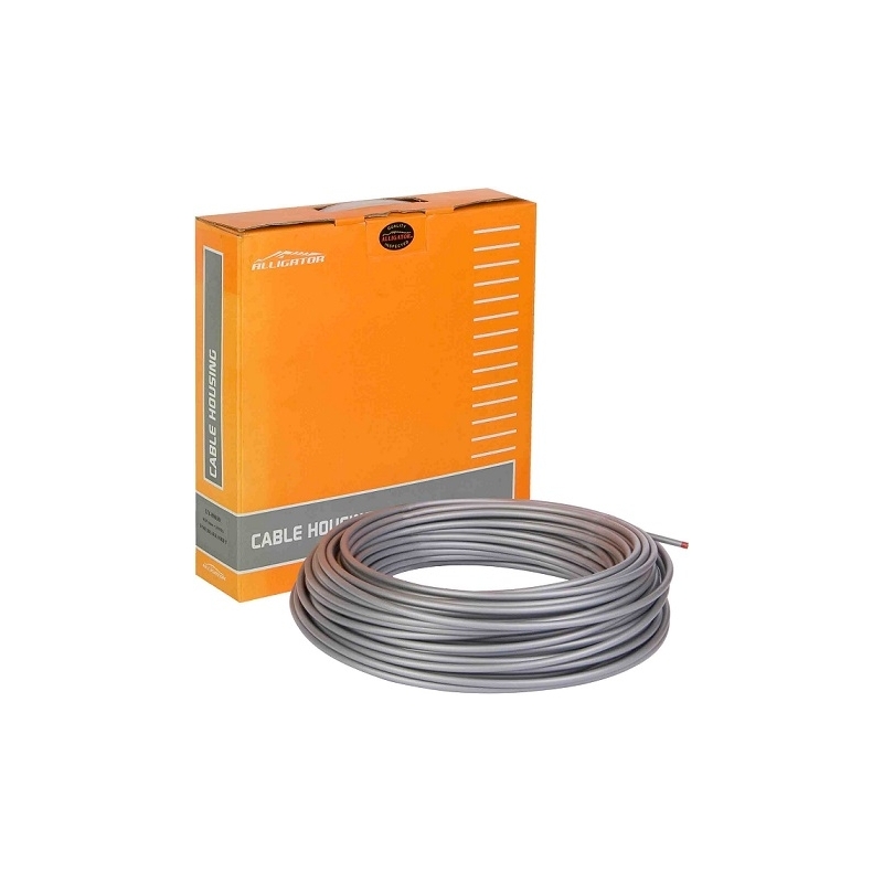 Оболочка троса тормоза LY-2203014 Alligator, диаметр 5 мм, 3 слоя (внешняя поливиниловая оболочка, витая стальная оболочка, полиэтиленовая внутрення оболочка), серая