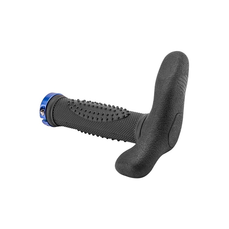 Грипсы XH-G72BL, длина 130 мм, с рогами, фиксация при помощи винта, материал термопластичная резина, чёрные, синие кольца