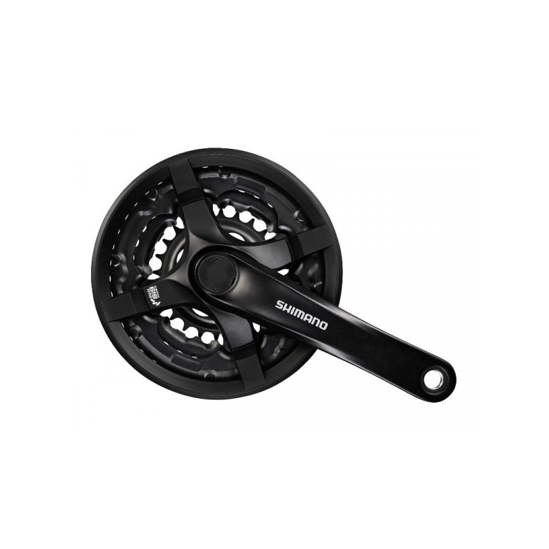 Система Shimano FC-TY501, с длинной шатуна 170 мм. Набор не съемных звезд 42/34/24T, для трансмиссий 6/7/8 скоростей. Используется с каретками под квадрат, с защитой цепи, цвет черный.